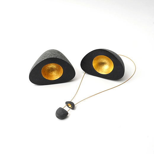 Das Hauptthema im Schmuck von Vitalis Kubach sind die Kieselsteine, die sie auf ihren Reisen findet und in ihren Arbeiten verwendet. Sie speichern ein langes Stück Erdgeschichte. Sie werden geformt von den Kräften der Natur: Wasser, Wind und Wellen. Die Kombination mit wertvollen Materialien wie Silber oder Gold heben diese vermeintlich einfachen Steine heraus aus der Masse und betonen ihre Individualität, ihre Besonderheit, ihre Wertigkeit.